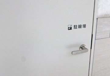 駐輪場の絵にはスプーンの絵が入っており遊び心がある。